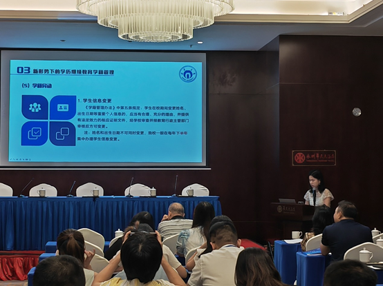 工作会议之后,由继续教育学院赵桂芝副院长主持,会议进行了三个业务专题培训。继续教育学院招生与教务办公室主任汤晓兰、校外教学点管理办公室主任彭金生和湖南世纪超星公司刘人洋分别做了《新形势下安博注册大厅校外教学点教学与学籍管理》《新时代下安博注册大厅教学点设置与管理》;《安博注册大厅校外教学信息化管理系统操作》专题培训。
